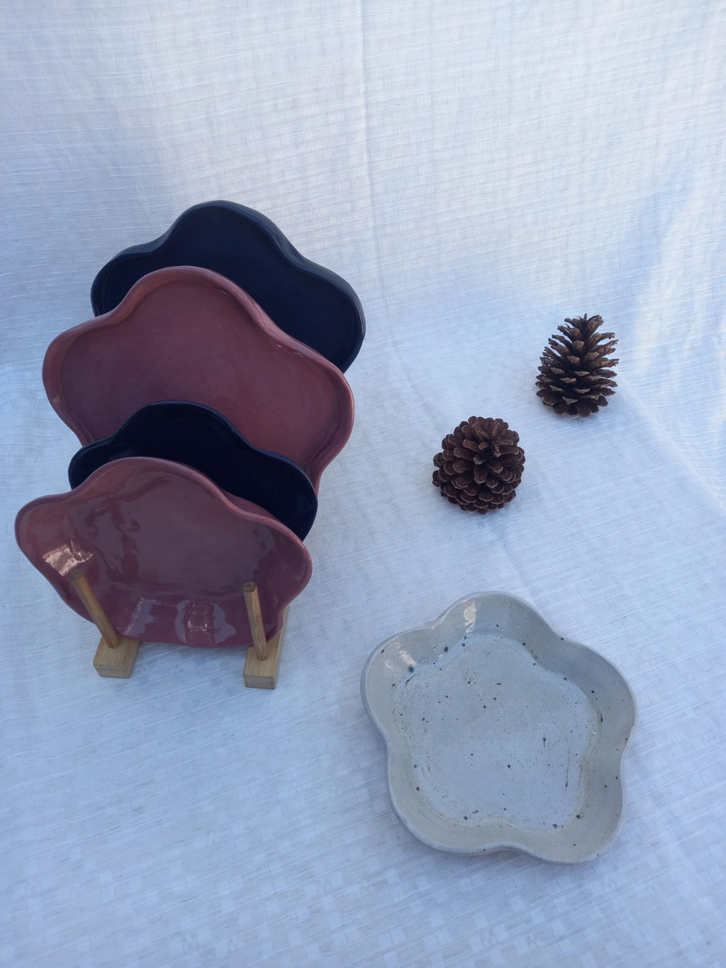 • Cerâmica de alta temperatura, modelagem e pintura à mão. Feitos com argilas e esmaltes profissionais, seguros para uso em alimentos e bebidas. Estética única e funcionalidade garantida.
